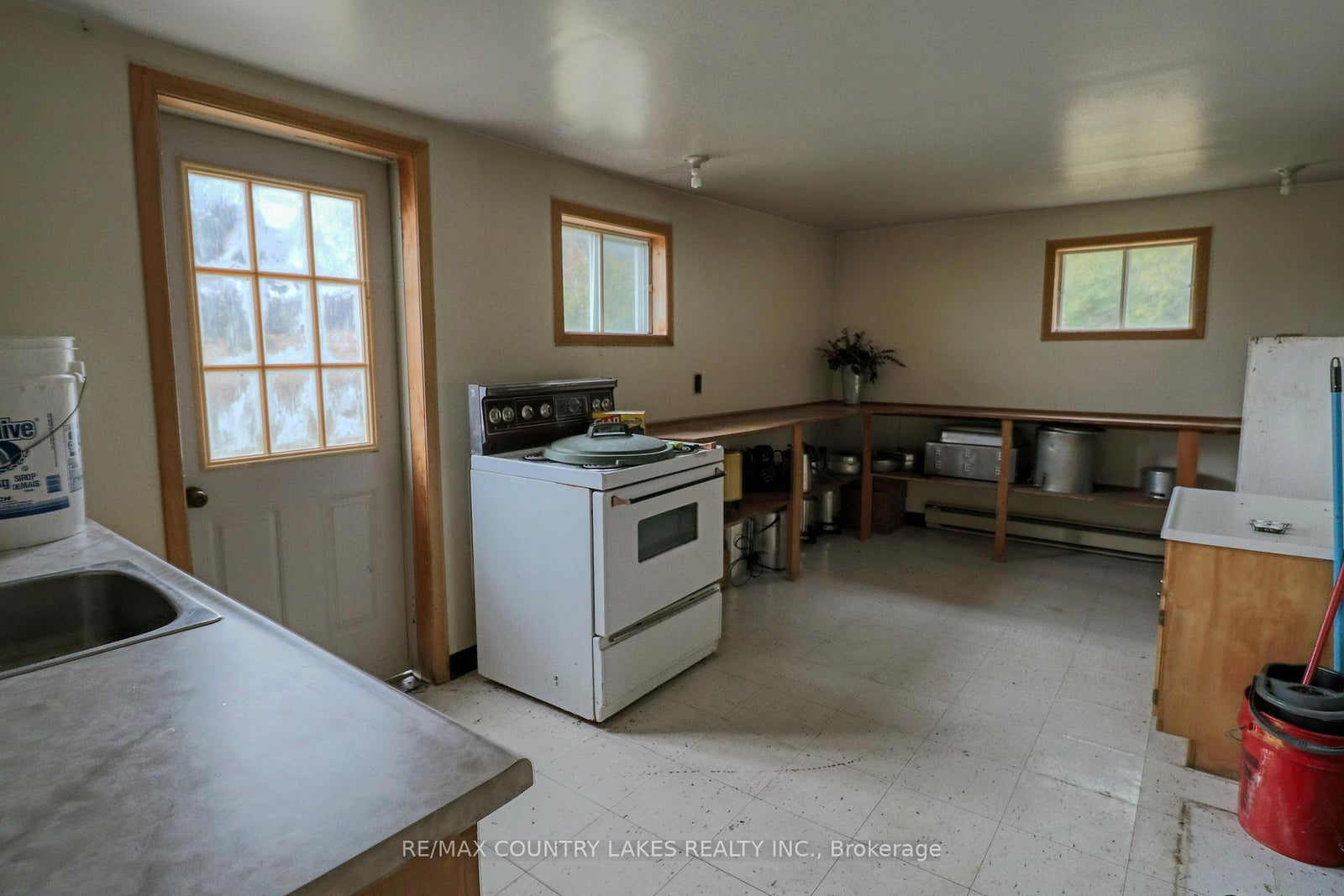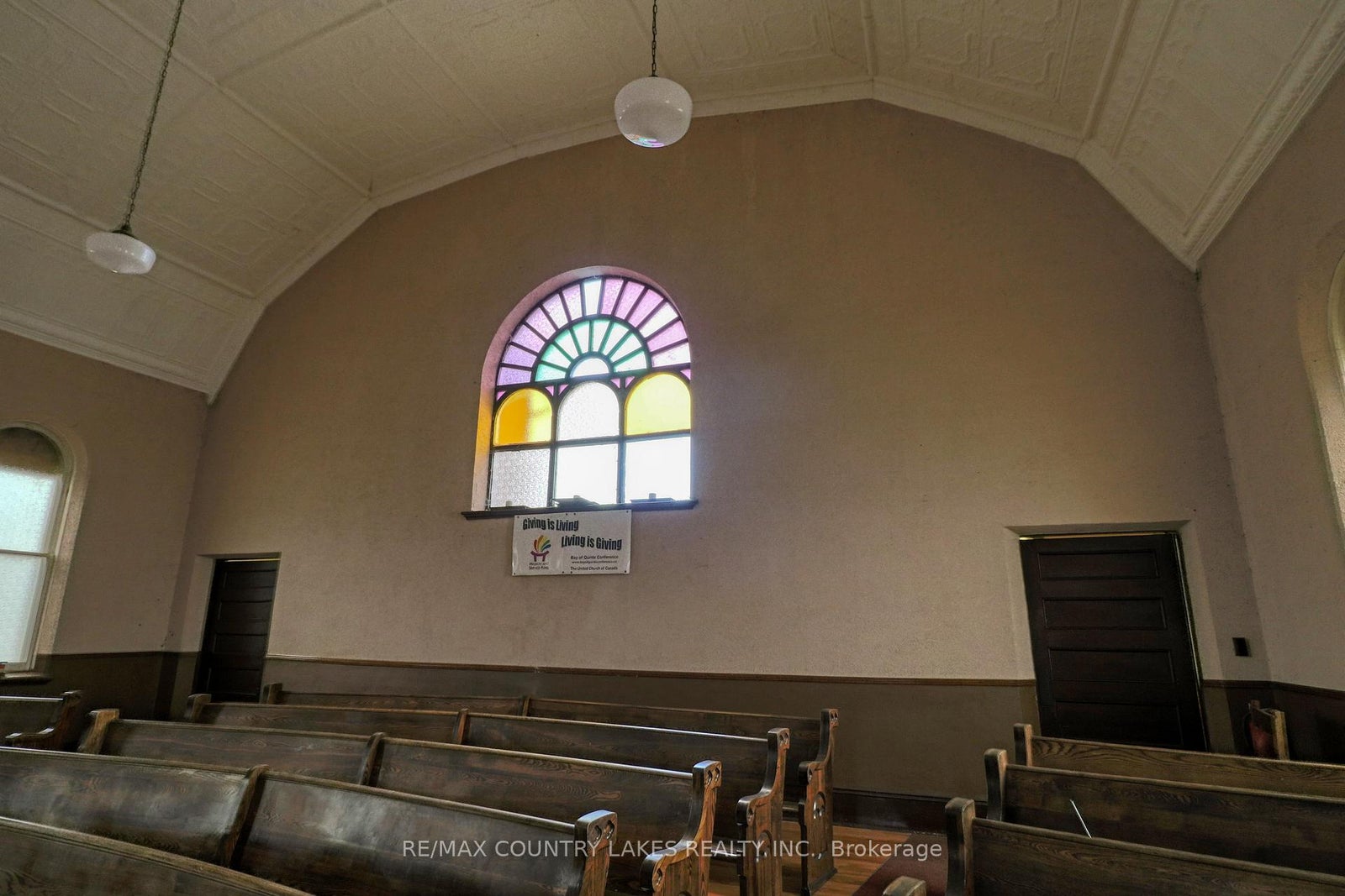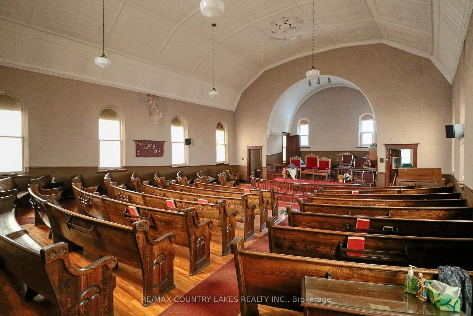 Opportunities like this don't come along often. This solid all-brick former church with a durable steel roof offers incredible bones and endless potential for the right buyer with vision. Set on a generous 218' x 99' lot with ample parking and a drilled well, the property provides approximately 3550 sq ft of finished above-grade space ready to be reimagined. Step inside to a truly unique Great Room featuring soaring cathedral ceilings, original pews, a front stage, and impressive ceiling height-ideal for adding a mezzanine level to create additional bedrooms or living space. A double stairwell leads to the upper level, opening the door for a variety of layout possibilities. The finished lower level adds even more flexibility with two kitchens, space for at least two bedrooms (with potential for more), a large recreation area, furnace room, storage, and both a 2-piece and 3-piece bath (with shower to be completed). Character-rich details like original stained glass windows create a stunning ambiance-especially when lit by the moon-while the peaceful setting offers quiet country nights and picturesque farm field views. Located just 15 minutes to Lindsay for all major shopping and only 5 minutes to Woodville for small-town essentials, this is a rare chance to enter the market at an affordable price with a property you can live in while transforming it into something truly special.